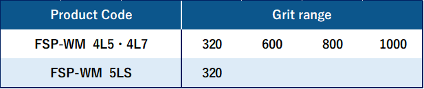 FSP-WM4L5/5LS: Ceramic wheel with abrasive particles arranged in a three-dimensional structure. It eliminates hole dropouts and unevenness in polishing and ensures a uniform finished surface.TLF: Ceramic wheels with abrasive grains arranged in a three-dimensional structure. The self-regulating action of the abrasive grains within the pellet resin reduces clogging and provides excellent grinding performance.